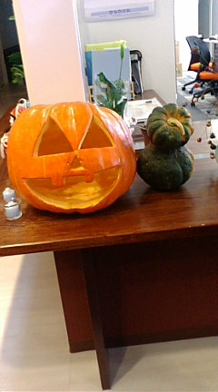 リコーダーの練習場所にお借りしている老人ホームにあったカボチャオバケ。